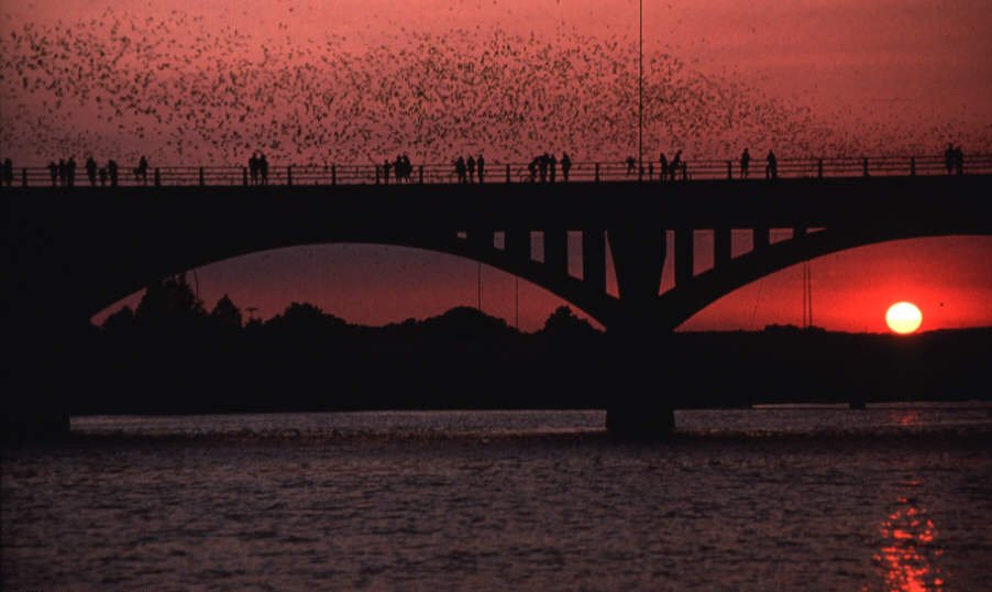 Congress Ave. Bats in Austin In the summer, nearly 1.5 million Mexican Free-Tailed Bats live under the bridge, and you can see them nightly from mid-March to November to head out and get dinner. It's an amazing experience.